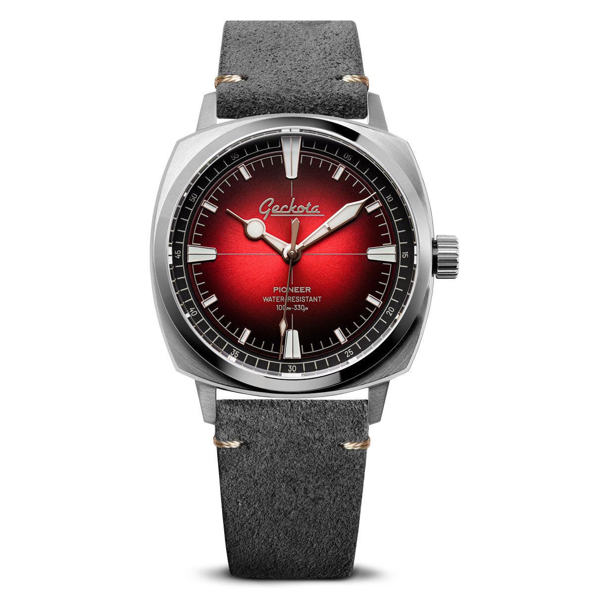 Geckota es probablemente una de las mejores relaciones calidad-precio del mercado independiente. Su característica caja tipo cojín y ese estilo que recuerda a los muscle cars de los años 70 hacen que sus relojes tengan una personalidad inconfundible. El Pioneer con esfera rojo sangre me parece especialmente acertado: llamativo sin ser excesivo.