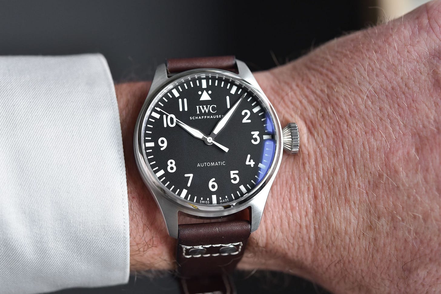 IWC fue una de las pioneras en crear relojes específicos para las necesidades de un piloto. El Big Pilot, llamado así (Gran Reloj de Piloto) por su tamaño de hasta 55 mm de diámetro, es un icono que sigue acompañando las muñecas de los aficionados. Es importante que los números sean legibles, a poder ser arábigos; que lleve superluminova en todos ellos, incluidas las manecillas, para verlo bien de noche; una corona grande para poder ajustar la hora con guantes gruesos; y correa NATO o de cuero, ya que el acero, a bajas temperaturas, no es muy agradable y pesa.