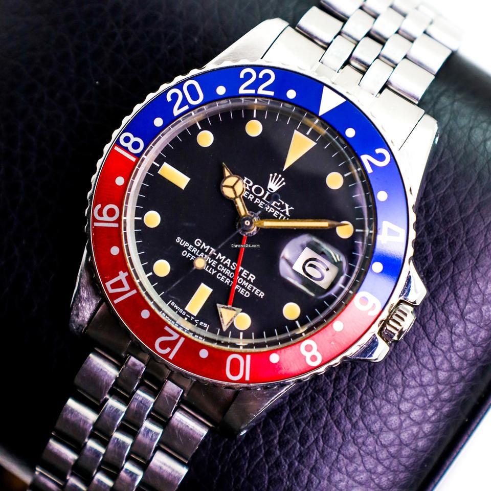 El GMT-Master nace con la aerolínea Pan-Am, a muchos os sonará de la película Atrápame si puedes protagonizada por Leonardo DiCaprio. PanAm y Rolex desarrollaron juntos la función GMT, que permitía a los pilotos tener en sus relojes la hora local y la hora del lugar de destino. Fue un reloj para conectar el mundo que hoy goza de una gran popularidad entre los aficionados que los han apodado según sus colores como Batman, Batgirl, Pepsi, Sprite, Bruce Wayne….